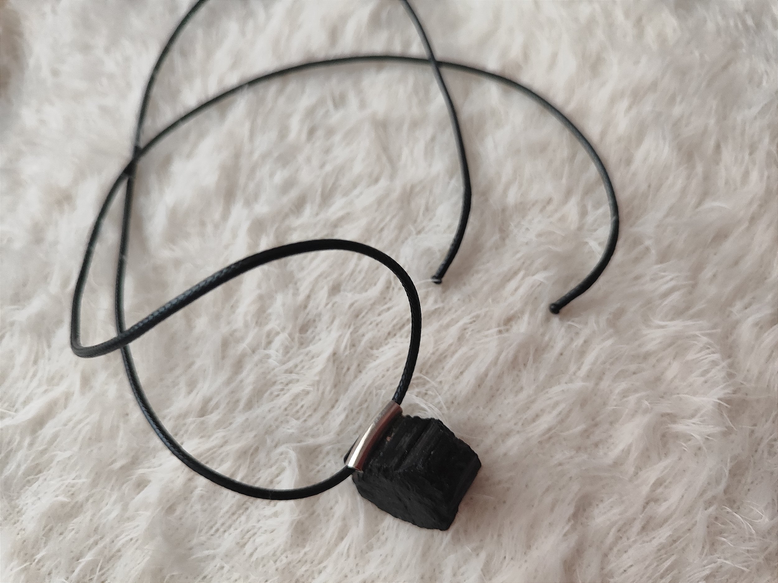 colar cordão com pingente de turmalina negra bruta, pedra protetora.