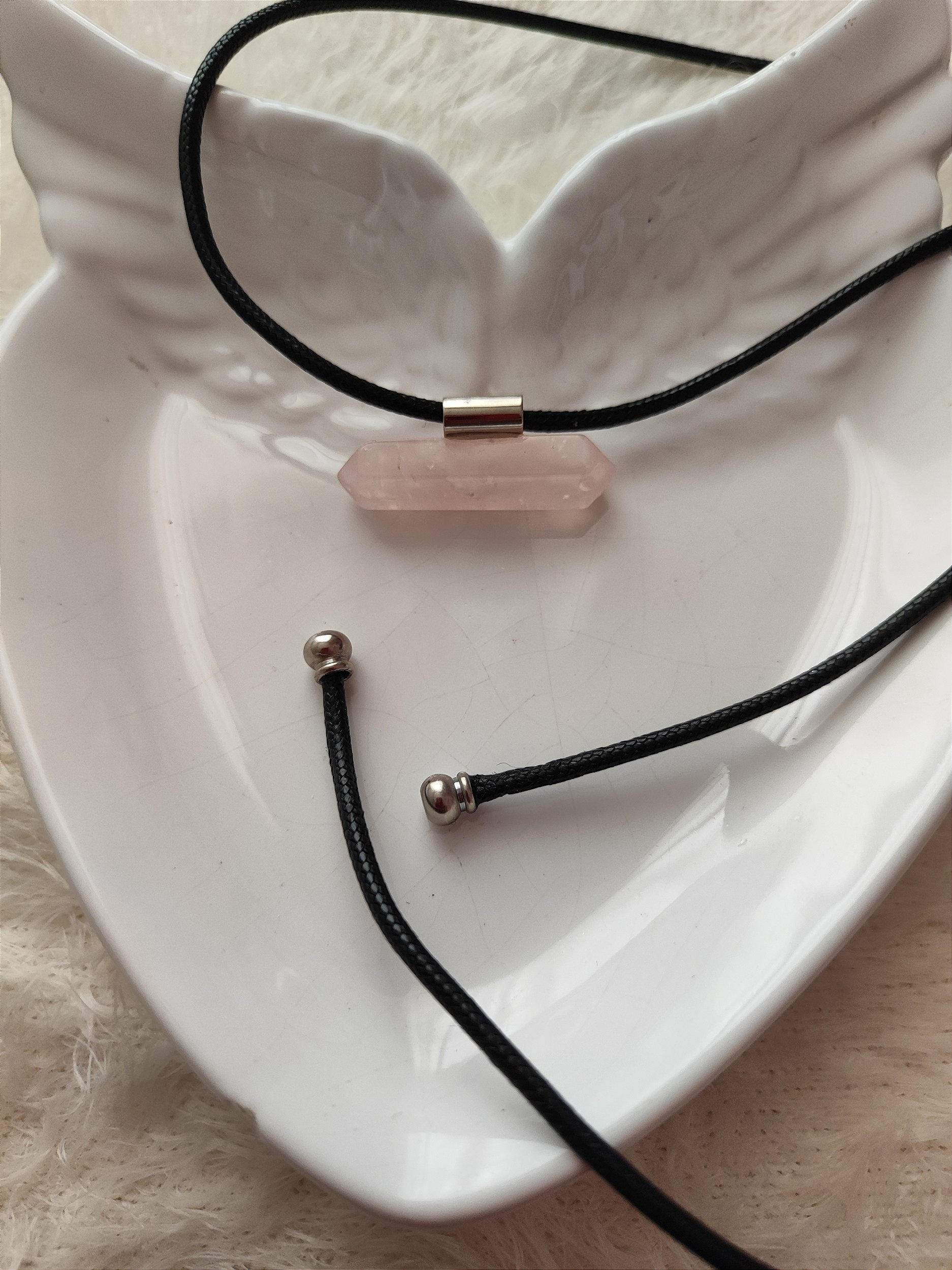 pingente de quartzo rosa natural lapidado biterminado. energia da amorosidade.